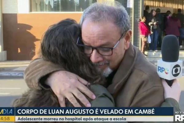 Ataque em escola: avô de vítima pede abraço de repórter ao vivo. Veja