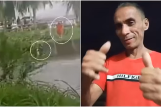 Policial militar resgata criança presa em inundação em Fortaleza