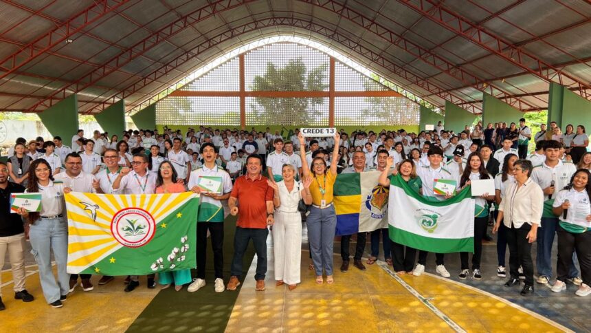 A ação contou com a presença da secretária Executiva da Seduc, Emanuelle Grace, representando a secretária da Educação do Ceará, Eliana Estrela, além de diretores, coordenadores, professores e dos alunos da rede estadual de ensino que comemoraram a conquista.