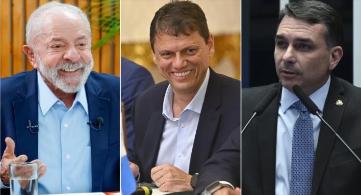 Lula aparece com 44% contra 39% de Tarcísio. Já no cenário com Flávio, o presidente tem 45% e o senador, 38%. Contra o governador do Paraná, Lula aparece com 43% e Ratinho Jr. tem 36%.