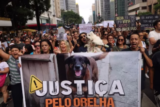 Morte do cão Orelha mobiliza artistas e manifestantes em protestos neste domingo pelo Brasil