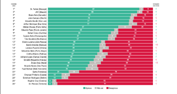 O prefeito melhor avaliado foi Dr. Furlan, do MDB de Macapá, com aprovação de 87% e reeleito com 85% dos votos.