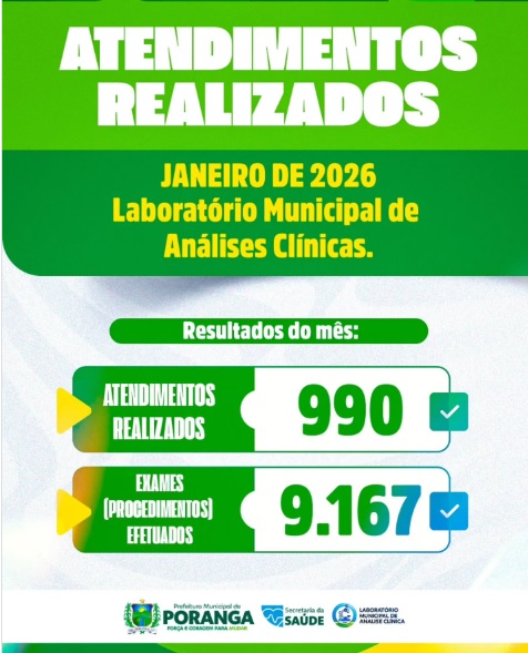Dados do Laboratório Municipal de Análises Clínicas apontam que, somente no mês de janeiro de 2026, foram realizados 990 atendimentos e 9.167 exames laboratoriais, números que evidenciam o fortalecimento do diagnóstico, da prevenção e do acompanhamento clínico dos pacientes atendidos pelo Sistema Municipal de Saúde.